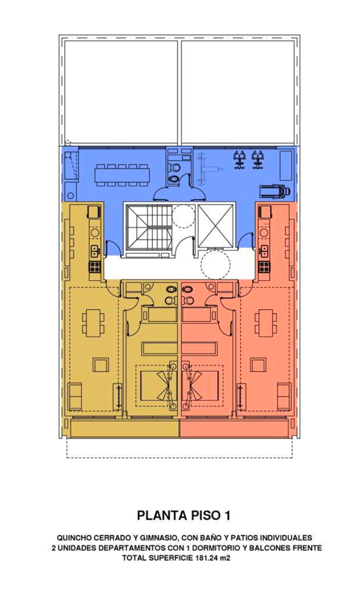 El edificio cuenta con gimnasio, cocheras, bauleras y quincho cubierto con parrillero. Laundry disponible. Orientación norte. Antigüedad: en construcción. Disposición frente. Medidas aproximadas y no vinculantes.
